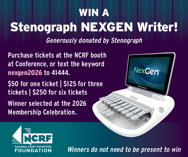 The National Court Reporters Foundation (NCRF) has announced its 2026 Stenograph NexGen Writer fundraiser — a chance to win a cutting-edge Stenograph writer while making…
