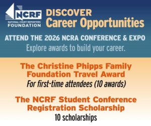 This profession is filled with men and women who understand that being a respected professional requires staying abreast of technology, continuing education, and daily devotion to the hard work of being successful. It’s an act of love — an expression of respect for yourself as a top-tier professional. You should be proud of your hard-won skills. NCRA is our community — an association whose 100 years of existence is our shared heritage. We are here to be a part of that brain trust. We’re a community. We’re family.