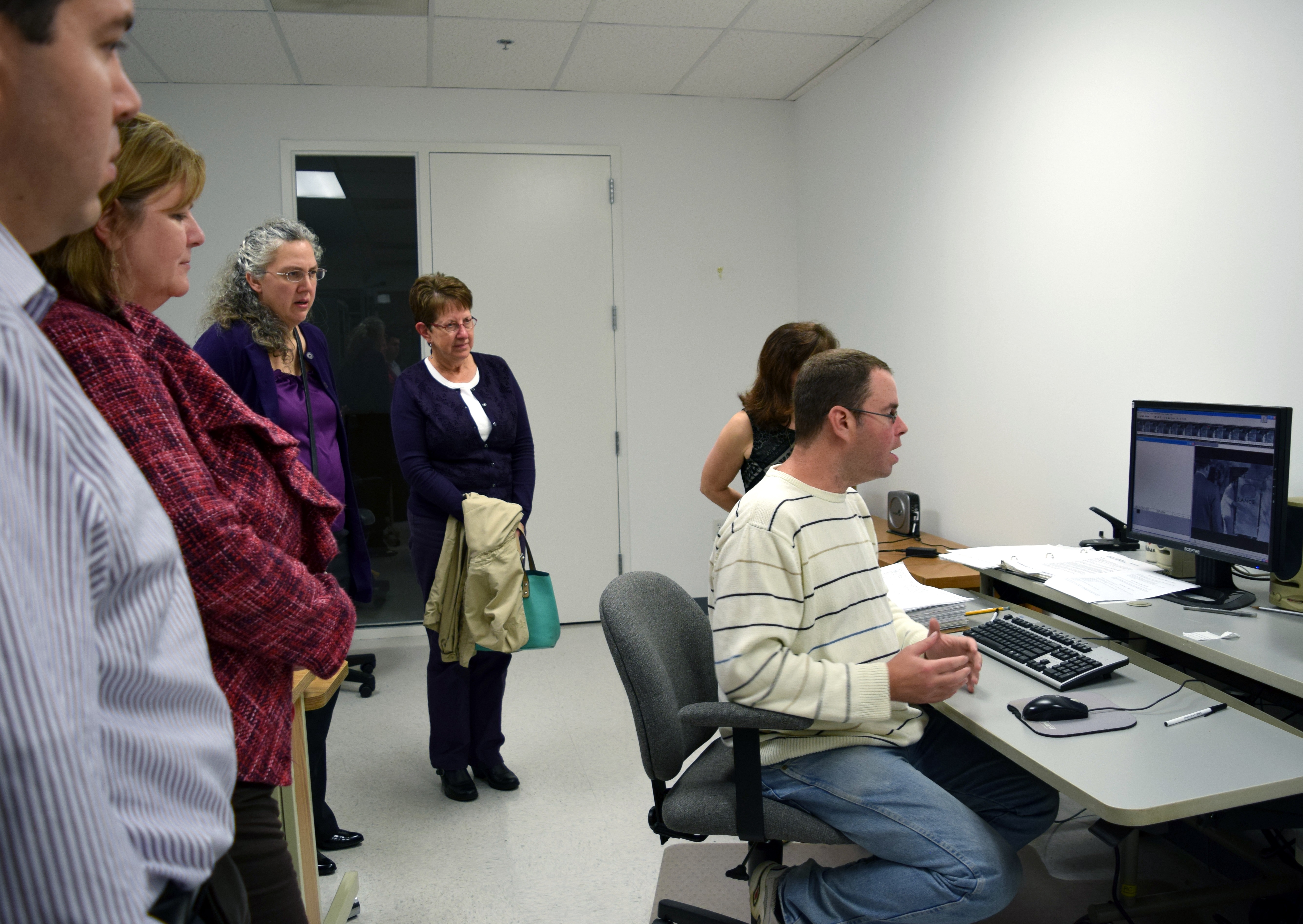 On Oct. 27, Darlene Parker, RPR, the director of steno captioning and realtime relations at the National Captioning Institute, guided a few NCRA staff members on a tour of NCI’s headquarters in Chantilly, Va., located 25 miles outside of Washington, D.C. In addition, a few members of the NCRA Board of Directors visited on Nov. 13. NCI also has offices in Santa Clarita, Calif., and in Dallas, Texas, which houses NCI’s technical operations center. During the tour, Parker provided a bit of background about captioning and NCI, and she organized demonstrations of both live and offline captioning.