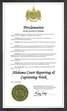 Members of the Alabama Court Reporters Association were also successful in securing an official proclamation signed by Gov. Kay Ivey recognizing the week in that state.