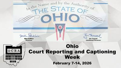 Official proclamations recognizing the week have also been obtained in several states, including in Ohio, where Gov. Mike DeWine and Lt. Gov. Jim Tressel celebrated the event by declaring Feb. 7-14 the state’s official 2026 Court Reporting and Captioning Week. The proclamation was secured by members of the Ohio Court Reporters Association.