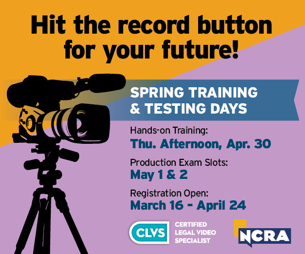 Take the next step in your professional journey by registering now for the upcoming CLVS Production Exam. Join us at NCRA headquarters in Reston, Va., from April 30–May 2 to demonstrate your proficiency in the field and join an elite group of professionals dedicated to high-quality legal media production.