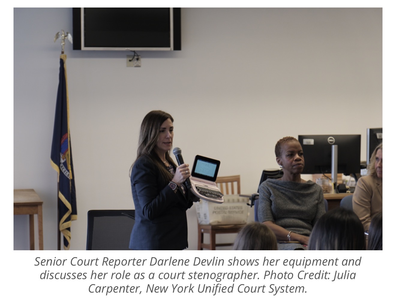 DMD | It was energizing. Standing in the Central Jury Room, looking out at more than 100 young women — plus many more watching via livestream — you could feel their curiosity from the moment the program began. They were engaged, attentive, and genuinely interested in learning about the many different roles within the courts.