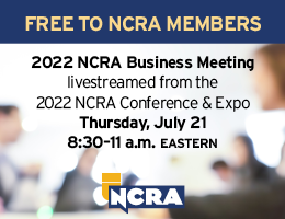 NCRA’s Annual Business Meeting will take place Thursday, Aug. 1 from 8:30-11 a.m. Eastern in conjunction with the NCRA Conference & Expo at the Galt…